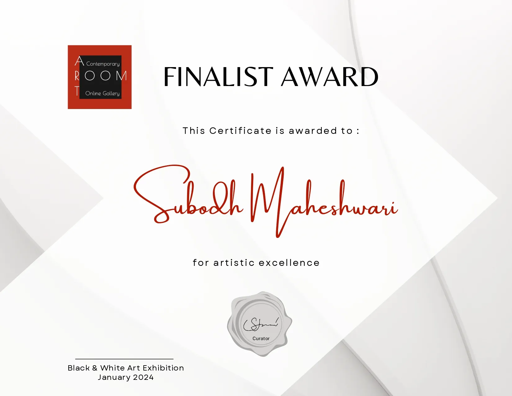 Subodh Maheshwari Earns Finalist Honors in Prestigious Black & White Art Exhibition