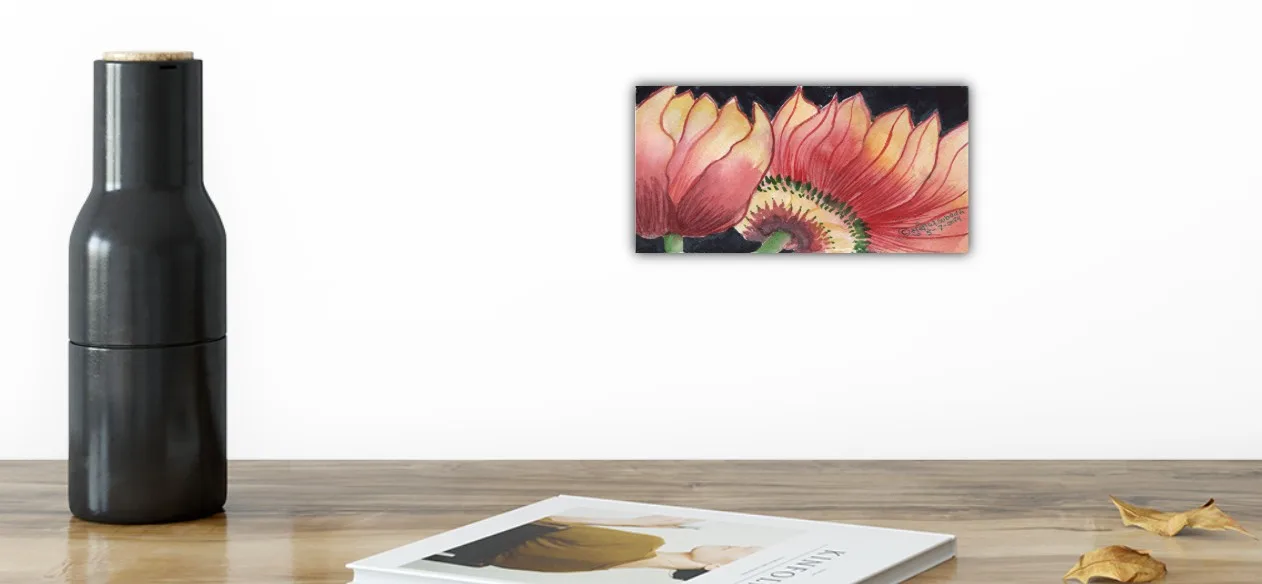 Blushing Petals is a captivating watercolor painting that beautifully captures the delicate essence of blooming flowers. The petals, painted in warm hues of red, pink, and gold, appear to glow against a deep, dark background, creating a striking contrast. Each petal is gracefully outlined with subtle red strokes, enhancing their natural curves and movement. The intricate details of the flower’s center, with soft green and yellow tones, add depth and texture, drawing the viewer into the heart of the bloom. The gentle blending of colors gives the painting a soft, dreamy quality, evoking a sense of warmth, serenity, and admiration for nature’s beauty.