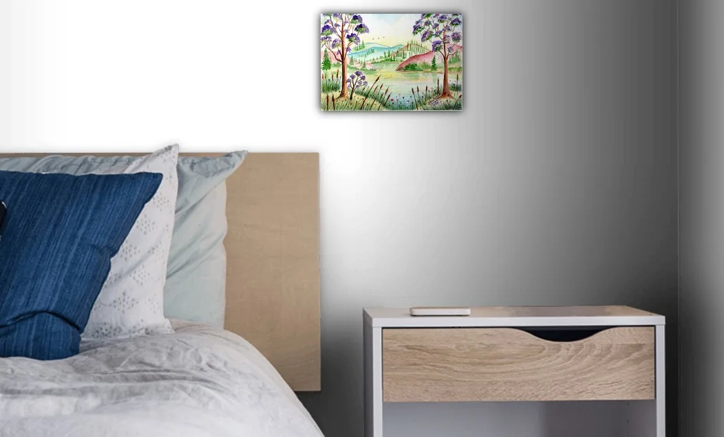 "Jacaranda Trees" is a wonderful addition if you are drawn to classic, peaceful landscapes and the soft, expressive quality of watercolor. The unique purple of the jacaranda blossoms provides a distinctive and sophisticated color focal point. It is ideal for a space that values tranquility and the beauty of natural asymmetry.