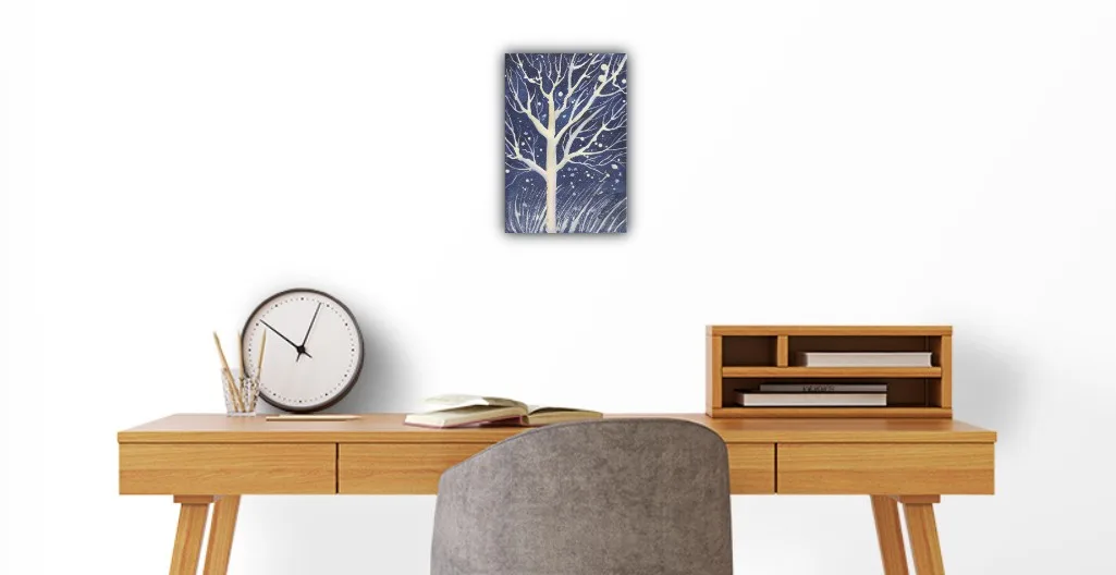 Ideal for those who find peace in simplicity and stillness, this artwork brings the serene beauty of a snowy night into any space — a reminder of tranquility, clarity, and quiet reflection.
