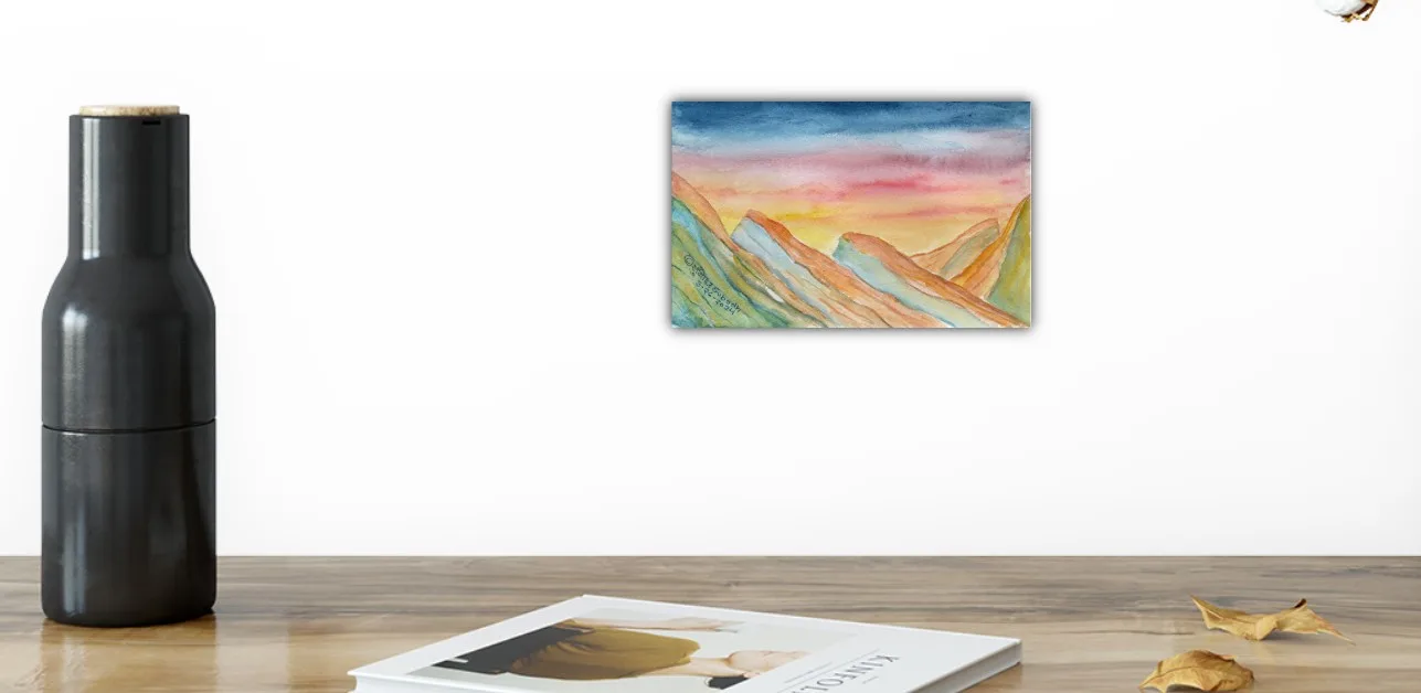 "Sleeping Beauties" portrays a tranquil mountain landscape bathed in the tender hues of sunrise. The gentle slopes flow in rhythmic harmony, their pastel tones blending seamlessly with the warm light of dawn. The composition captures nature in a serene moment of stillness — where the earth seems to rest beneath the awakening sky.