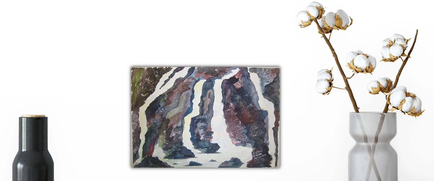 "The Plunge" immerses you in nature’s untamed rhythm — the force of waterfalls breaking through rugged rocks, painted in rich, layered tones. The interplay of shadow and fluid brushwork evokes a sense of awe, echoing the timeless beauty of water in motion.